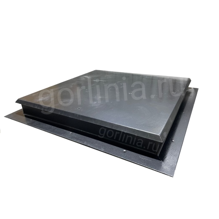 Откидная крышка заполнена сверху гладким кровельным листом 2 мм с загнутыми книзу краями, вылетающими на 25 мм за периметр коробки. Внутри каркаса створки между ребрами обвязки проложен рулонный минеральный утеплитель 50 мм, подшитый снизу листом 1 мм.
