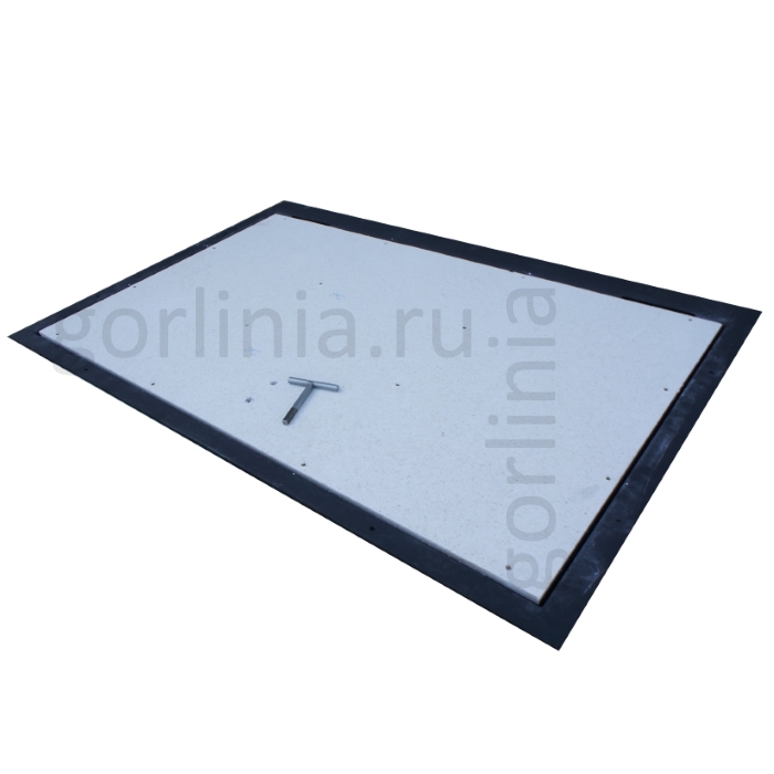 Облегченная коробка из профилированного листового проката 3 мм с наличником 35 мм (10 со стороны открывания) - есть требования по установке, предварительная консультация обязательна! Каркас дверки с обвязкой сварен из трубы 30х20, заполнен ГВЛ под чистовую отделку. Конструкция смещенного за ось шарнирного соединения сохраняет лаза в чистоте 1150х600 для удобства спуска по лестнице в подвал.