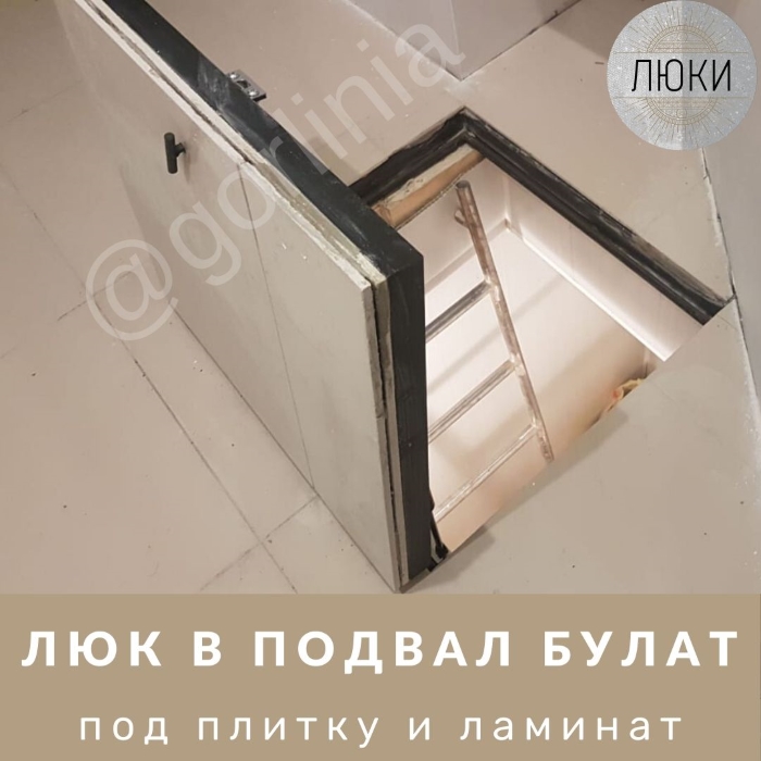 Облегченная модель без щелей в полу с уведенными за ось открывания петлями. Легкая ходовая часть и удобная установка. Просторный размер в свету 750*600 при поднятой крышке для удобного спуска по лестнице в подвальное помещение. При формировании посадочного отверстия обратите внимание, что защитные кожухи шарниров выходят за посадочную отметку по плечевой стороне (см фото).
