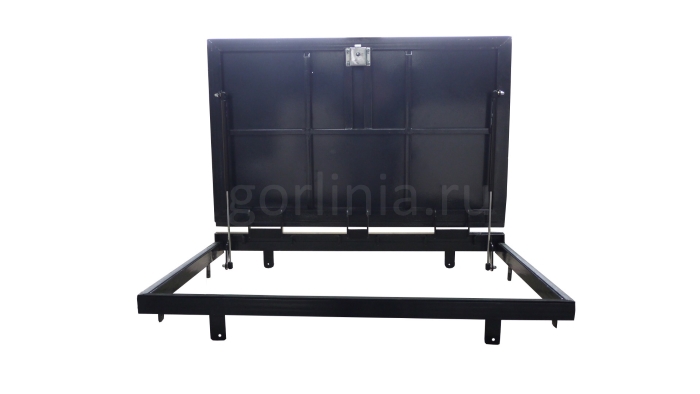 Рама без наличников выставляется в существующем отверстии 60*70 см с допусками, крепится в перекрытии через вертикальные пластины даже когда Ваш ремонт закончен и пол выложен керамогранитом или настелена ламинированная доска.